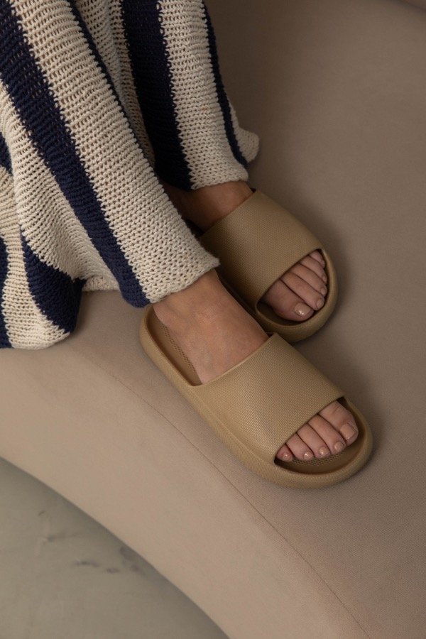 Sandalia de goma eva con su tira ancha. Son super livianas y muy comodas ya que acompañan la forma anatomica del pie y son acolchonadas. Su plataforma mide 3cm aproximadamente. Son ideales para los dias de rio, pileta y consideramos que tienen su toque formal para las noches de verano.